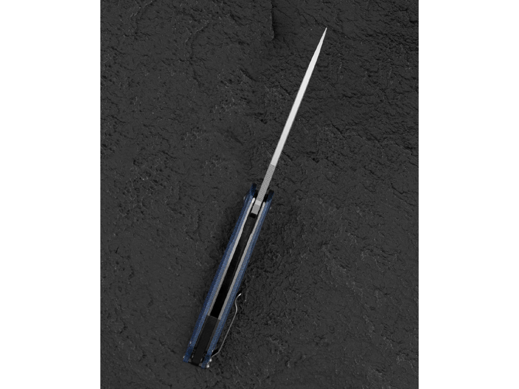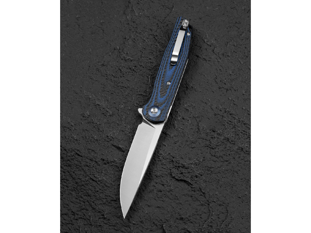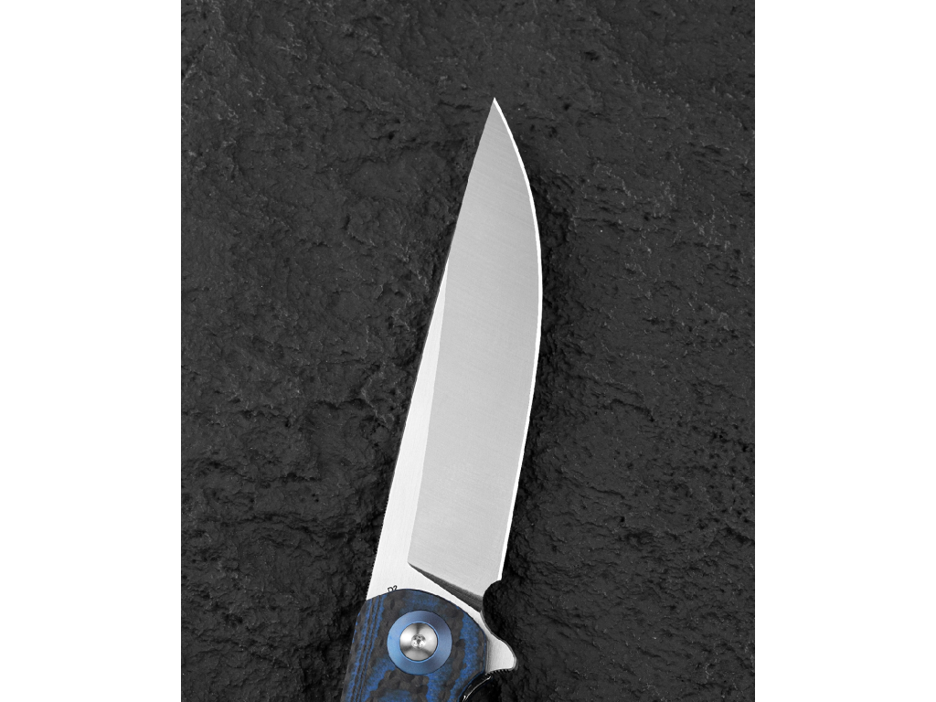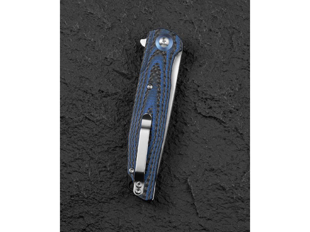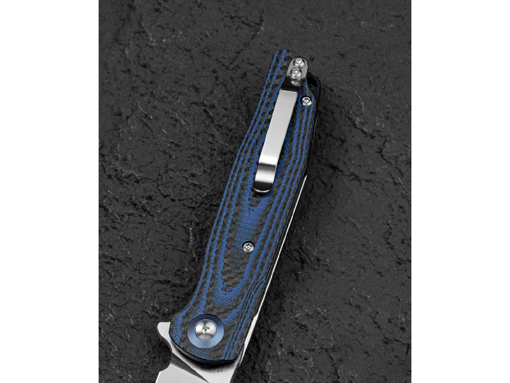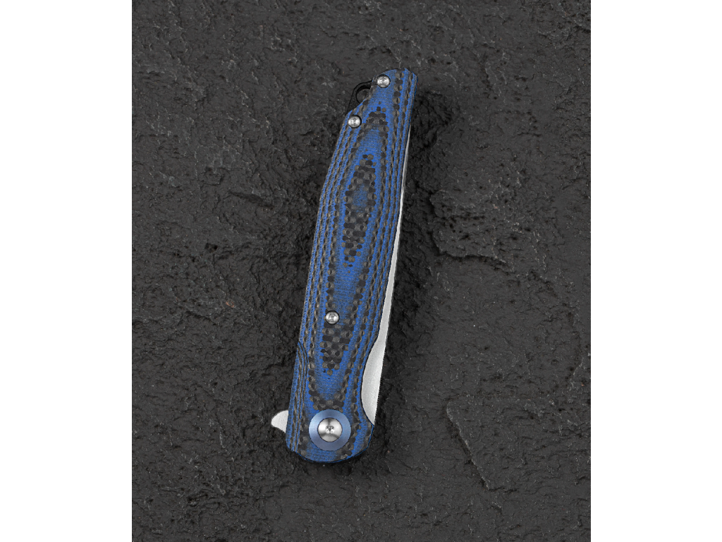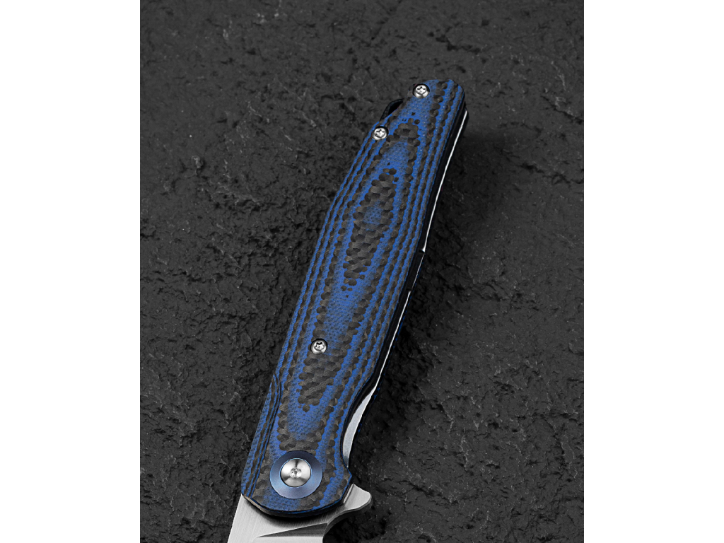 A G10 és karbon kombinációjú markolat nem csupán tartós és könnyű, hanem vizuálisan is kiemelkedő. A rétegelt szerkezet egyedi mintázatot hoz létre, amely elegáns és prémium megjelenést kölcsönöz a késnek.