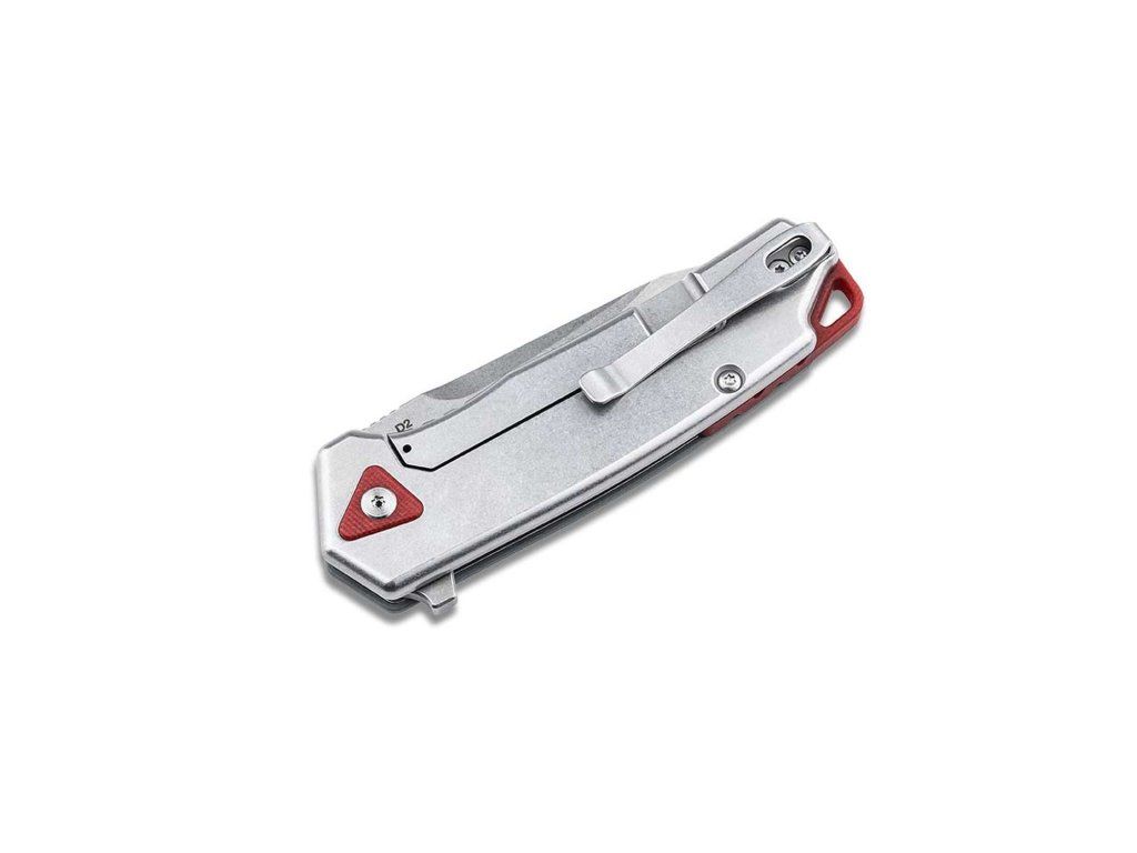 A G10 markolat kiváló tapadást és kényelmes fogást biztosít. A háromszög mintázat vizuálisan és funkcionálisan is kiemeli a kést. A piros backspacer karakteres megjelenést kölcsönöz, míg a mély zsebklipsz diszkrét, kényelmes hordást tesz lehetővé.