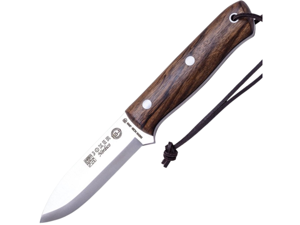 Válaszd a Joker Nordico CN115-P bushcraft kést, ha prémium Sandvik 14C28N acél pengét, erős full tang konstrukciót és praktikus tűzgyújtóval ellátott bőrtokot szeretnél.