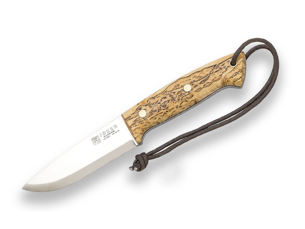 A full tang kialakítás nagy szilárdságot biztosít intenzív használat esetén is. A göndör nyírfa markolat természetes megjelenésű és kényelmes fogást nyújt.
