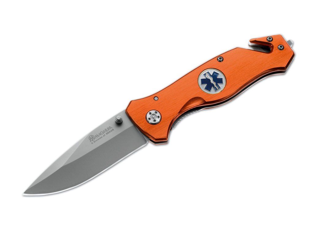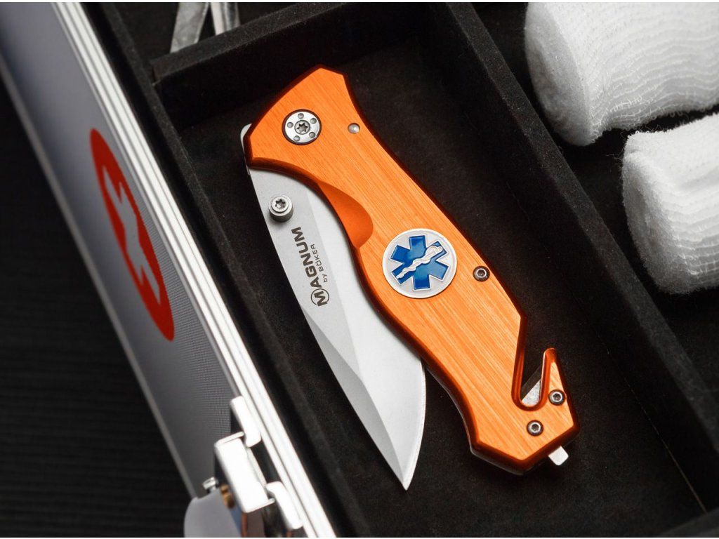 A Magnum Medic mentőkés a 440 rozsdamentes acél pengét, a beépített üvegtörőt és a praktikus övvágót ötvözi, így ideális mentőkés vészhelyzetekhez és gyors beavatkozásokhoz.