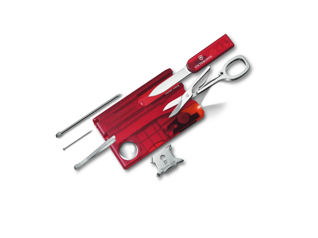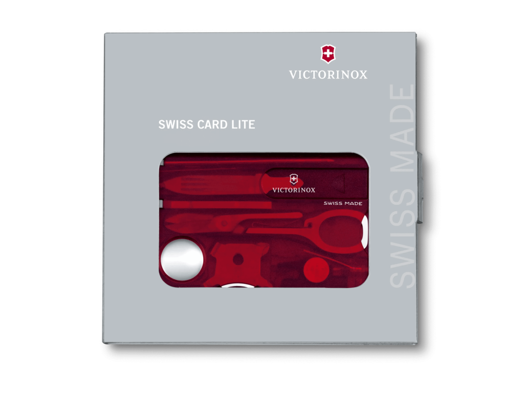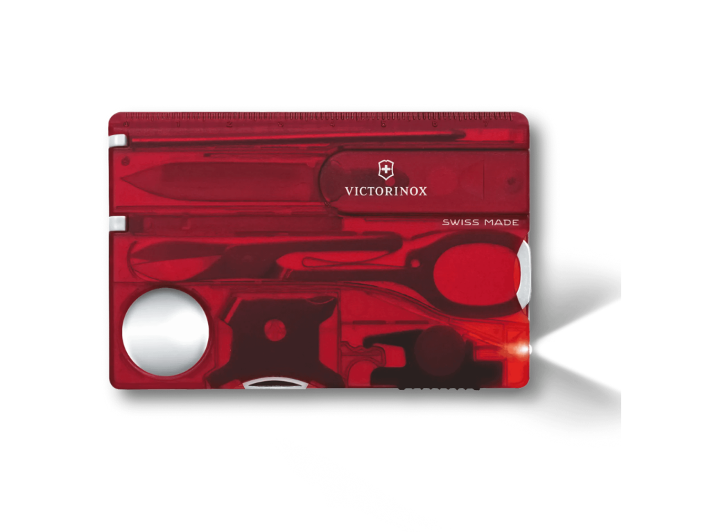 A Victorinox SwissCard Lite 0.7300.T Ruby egy bankkártya-méretű Swiss Made multifunkciós kártya LED lámpával és nagyítóval, összesen 13 eszközzel – tökéletes mindennapi használatra és utazáshoz.