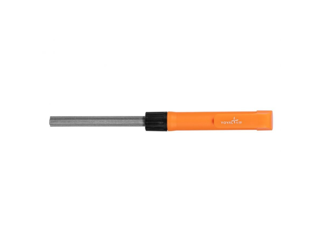 A gyémánt csiszolófelület gyors anyagleválasztást és hatékony élhelyreállítást biztosít még keményebb acélok esetén is. A speciális háromszög forma lehetővé teszi a fogazott kések és a horgok precíz élezését.