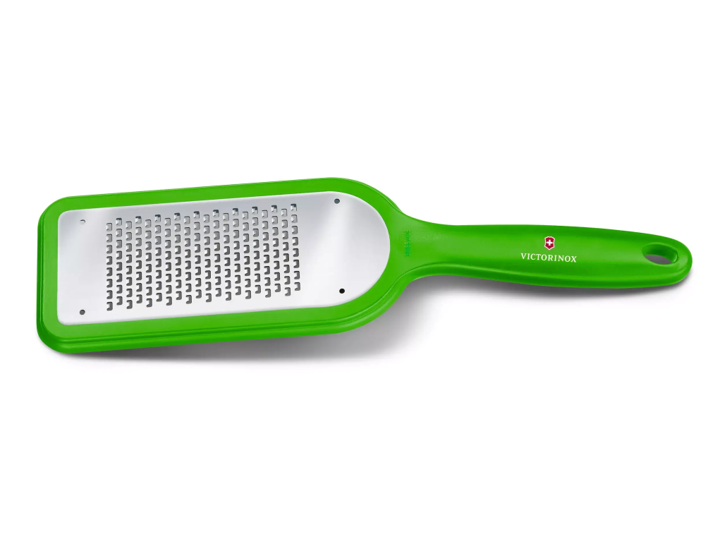 A Victorinox finom reszelő zöld markolattal praktikus és sokoldalú konyhai reszelő, amely megkönnyíti a mindennapi alapanyag-előkészítést. Éles rozsdamentes pengéjének és ergonomikus kialakításának köszönhetően kiváló választás finom sajt, citrusfélék héja, csokoládé, zöldségek vagy akár fűszerek reszeléséhez is.