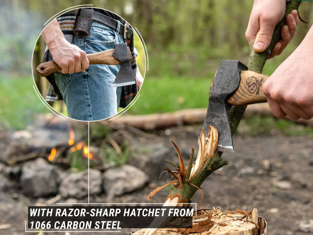 Válaszd a BeaverCraft AX1 bushcraft baltát, ha könnyű és precíz outdoor eszközt, 1066 szénacél pengét és ergonomikus kőrisfa nyelet keresel természetjáráshoz és faragáshoz.